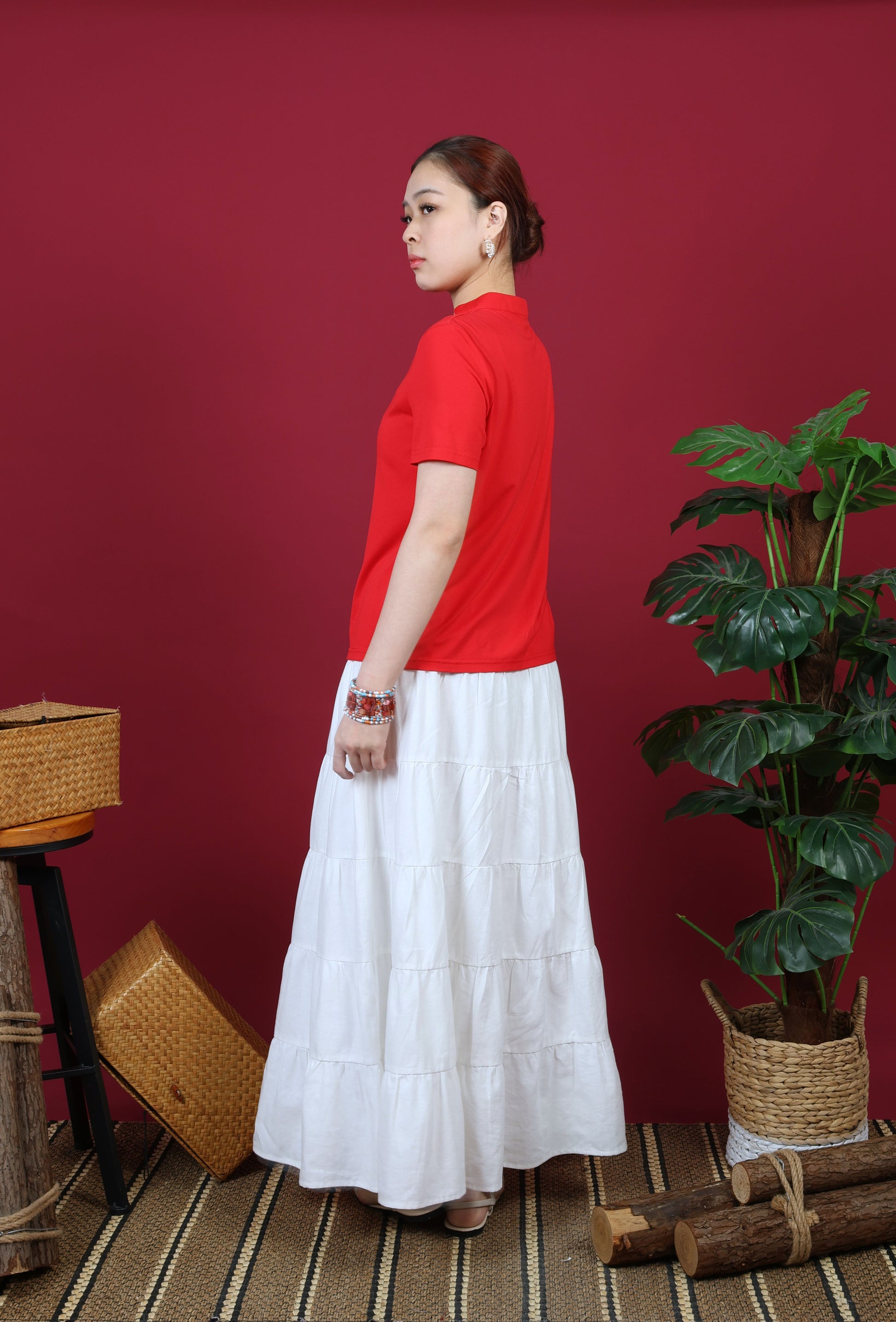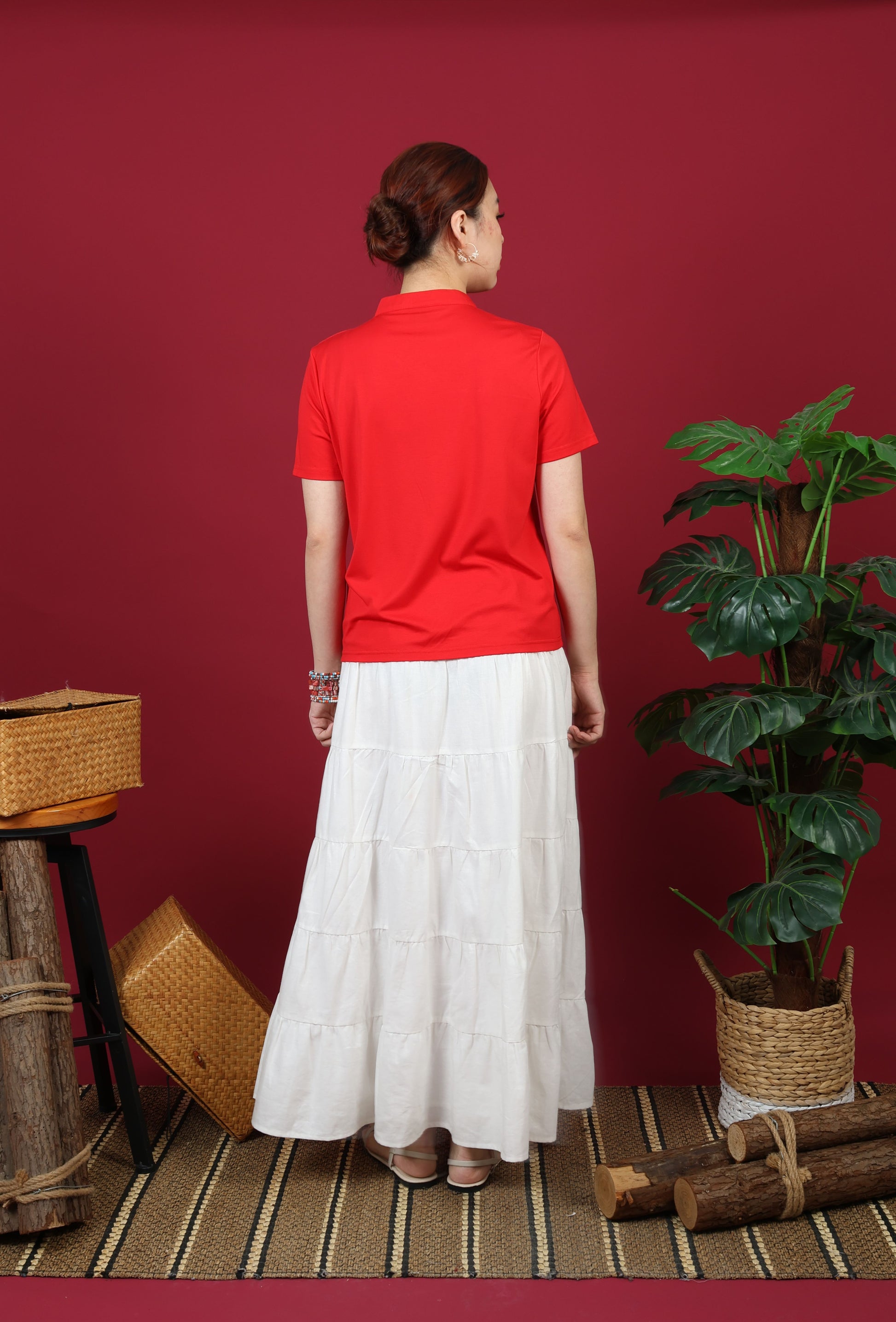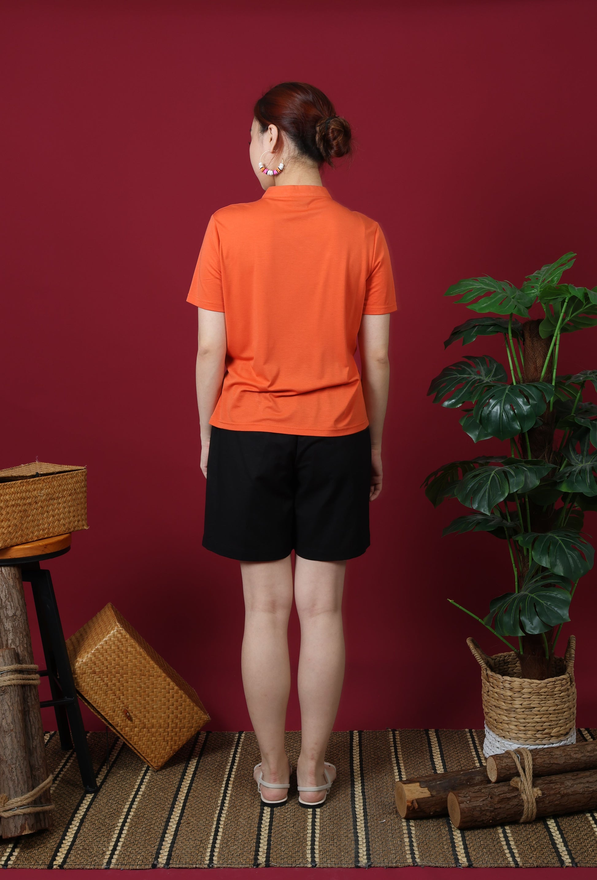 A modern take on tradition — this standout top features a clean mandarin collar and a unique neckline slit secured with an elegant knotted button. The short sleeves and smooth structure offer everyday comfort with a graceful twist. Whether dressed up or worn casually, it’s a refined piece that blends cultural charm with modern simplicity.