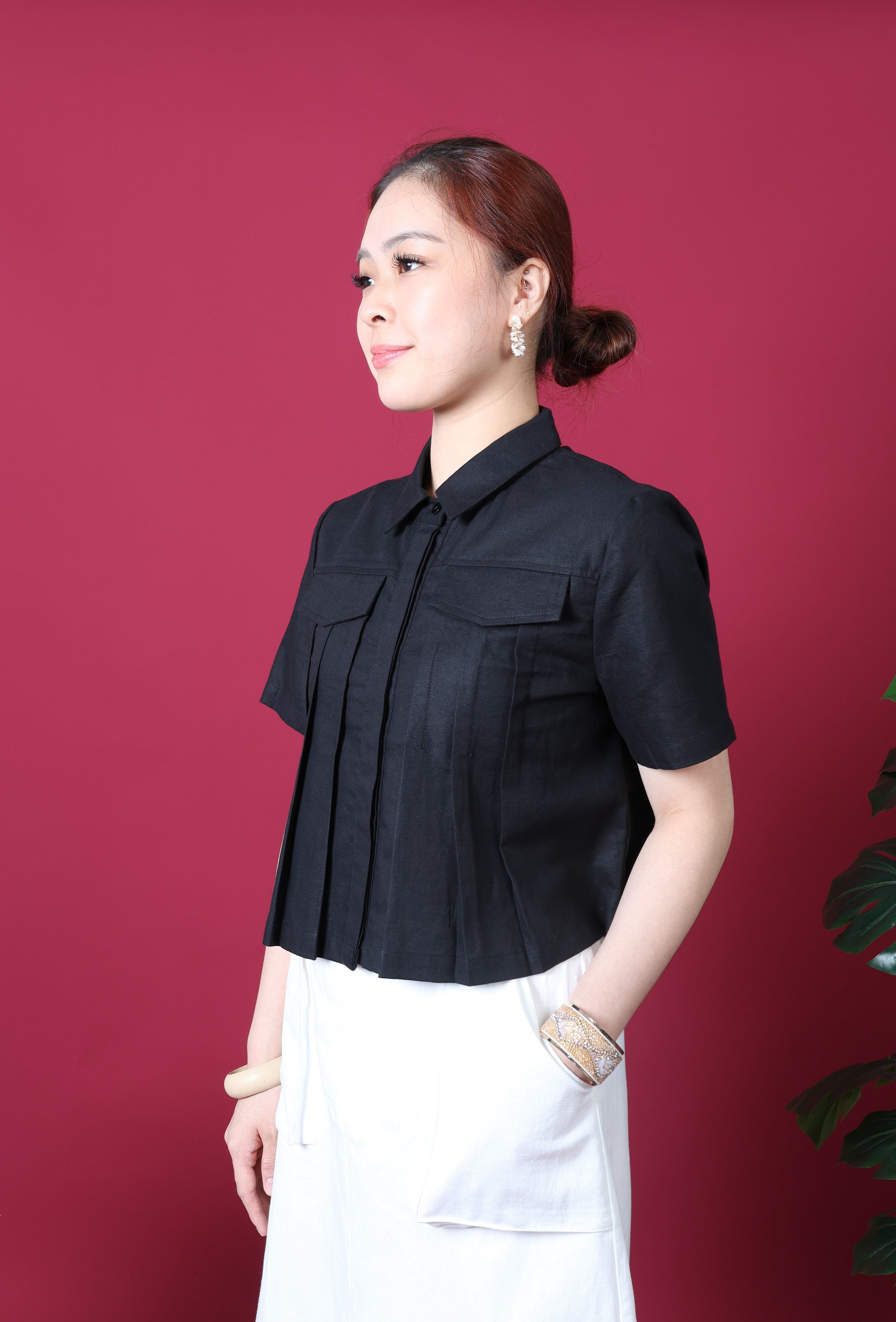 Pleated Crop Shirt